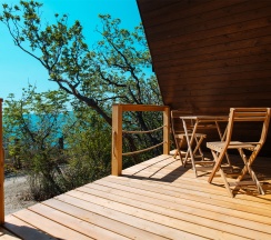 Эко-отель на скале, на берегу Чёрного моря. Уютные домики с видом на море. На территории отеля есть вся необходимая инфраструктура: спа комплекс с сауной, баней и теплой купелью на террасе, откуда открываются невероятные виды на море. Ресторан с европейской кухней с черноморским акцентом. Сама территория отеля тоже уникальна, содержит арт- объекты, а сам дизайн территории устроен таким образом, что из каждого уголка открывается потрясающий вид на море.