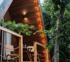 Забронировали домик a-frame, очень удобно что есть online регистрация проживания и не надо тратить время при приезде на оформление. Хотелось бы отметить вежливый персонал отеля. Очень красивая локация, природа, вид на море. В самом домике есть все необходимое для комфортного прибывания. На территории есть отличный ресторан the palma, рекомендую при заселении приобретать завтрак 🍳 - еда бесподобная! Нам очень понравилось 🥰 в slala kabardinka.