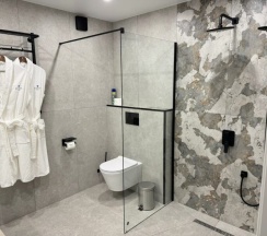 Номер оборудован джакузи, сауной и просторным балконом с видом на море. Гостям бесплатно доступна постирочная комната, гладильные принадлежности, пляжные полотенца и сумки, зонты от дождя.