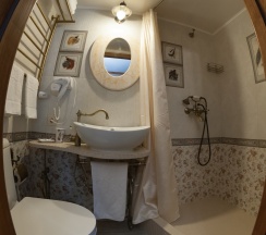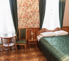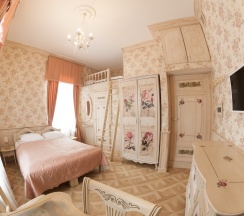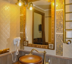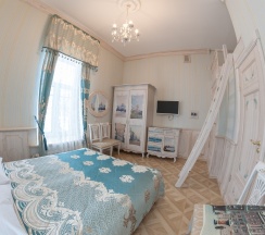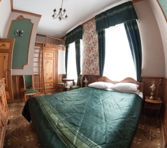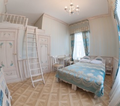 Двухкомнатный номер Люкс с собственной кухней. Рассчитан максимум на четырех человек. Номер состоит из спальни с двуспальной кроватью и кухни-гостиной с раскладным диваном (140 см). Изюминкой номера является ванна, стоящая в спальне. В номере имеется также обычный санузел с душевой. Кухня в номере оснащена электрической плитой, посудомоечной машиной, холодильником, микроволновой печью и электрическим чайником, а кроме того, всей необходимой посудой.
