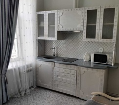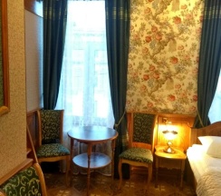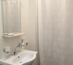 Номер рассчитан максимум на 2 человек. В номере есть небольшой кухонный уголок, включающий чайник, микроволновую печь, холодильник и небольшой набор необходимой посуды.