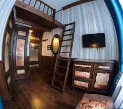 Средняя по размеру комната - рассчитан максимум на 3 человек. Основное спальное место представлено в двух модификациях: одна двуспальная кровать или две односпальные кровати. Дополнительное спальное место расположено на кровати-чердаке, куда необходимо подниматься по небольшой лестнице.