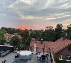 Все на очень высоком уровне, удобное расположение, уютно, завтрак вкусный и его вполне достаточно, в номере было все: тапочки, халаты, мыльные принадлежности, даже средства от Комаров в каждой комнате. Боулинг немного слышно, у нас был номер 1 люкс двухкомнатный на 3 этаже, но совсем не напрягало. Персонал на ресепшене просто замечательные люди, встретили нас в 22.00 вечера, все рассказали и показали, подсказали гида с авто для поездки на Куршскую косу. Благодарим за прекрасный хоть и короткий отпуск.
