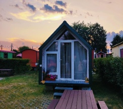Отличный кемпинг! Внутри есть все, чтобы приготовить еду. Можно ставить мангал рядом с домиком. Достопримечательности в шаговой доступности