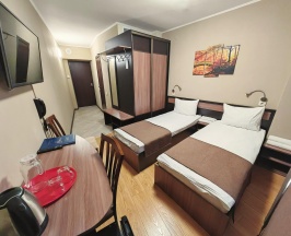 Стильные и очень уютные номера площадью 16,5 кв.м Двухместный номер с 2 кроватями прекрасно подходит для проживания двух гостей. Номер оснащен двумя односпальными кроватями и всем необходимым для вашего комфортного проживания. Беспроводной доступ в интернет и множество ТВ- каналов в цифровом качестве помогут скрасить время отдыха.