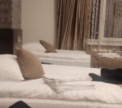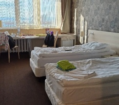 Ночь прошла хорошо, всё чисто,холодильник есть,телевизор Самсунг,номер двухместный,но чай и сахар были только на одного. Щётка с пастой,бритва,мыло,шампунь,гель были на двоих. Кулер с кипятком в коридоре,утюг и микроволновка тоже.