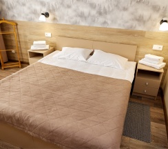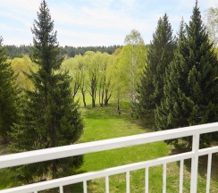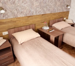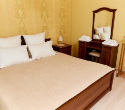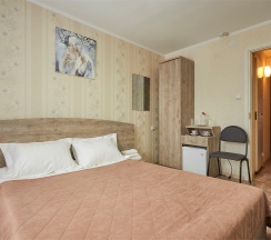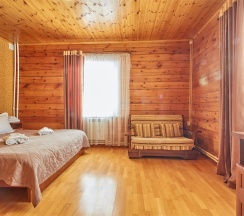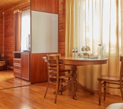 Номер в отдельно стоящем домике из сибирского кедра со всем необходимым для комфортабельного размещения и отдыха. Прекрасный вид на ухоженную территорию санатория.