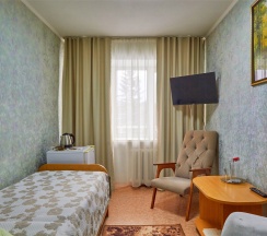 Номер со всем необходимым для комфортабельного размещения и отдыха. Прекрасный вид на ухоженную территорию санатория.