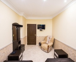 Прекрасный, просторный номер для четверых. Широкая, мягкая кровать, раскладной диван и уютный интерьер, а так же плазменный ТВ, холодильник, чайник и высокоскоростной Wi-Fi — все это будет в вашем распоряжении при заселении в этот номер. Ванная комната встроена. Идеальный вариант для того, чтобы провести романтический вечер или остановиться в шикарных условиях на время командировки.