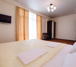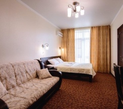 Отдыхали здесь в конце августа, всё очень понравилось, номер большой, просторный, уютная территория с бассейном, цены чуть ниже аналогичных вариантов, но при этом уровень очень хороший, приятные и доброжелательные сотрудники, и самый главный плюс - удачное расположение, до моря минут 15 и рядом есть всё необходимое, пятёрочка напротив через дорогу, много заведений, где можно покушать, один словом однозначно рекомендую