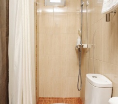 Комфортный номер , вместимостью до 4 гостей. Для Вашего удобства в номере имеются: три односпальные кровати + кресло-кровать для 1 гостя, набор полотенец и постельного белья, телевизор, журнальный столик, электрический чайник, посуда для чая и сока, фен, кондиционер, холодильник. В собственной ванной комнате есть душ, бесплатные туалетно-косметические принадлежности. На балконе имеется сушилка для белья. Вид на город Номера расположены на 3 этаже.