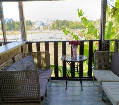2 открытые веранды для уютных вечеров. В нашем номере окно выходило на Мзымту, а вид с балкона на горы. В номере есть микроволновая печь , стиральная машина, раковина и посуда, что невероятно удобно.