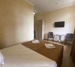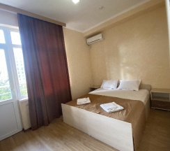 Чисто, есть всё необходимое. Белоснежное белье, удобные матрацы. Хорошая звукоизоляция. Кондиционер удачно расположен, не дует прямо на кровать, как бывает.Тихий и хорошо работает.Белье меняли. Полотенца меняли через день. Для бассейна выдают отдельные полотенца, можно брать их на пляж. Очень удобно! Очень рады были бассейну! Вода чистая, ухаживают за ним постоянно. Приятно окунуться после моря или экскурсии.Очень удобно было то, что внизу есть кухня со всей необходимой посудой. Посуда хорошая. Есть место для хранения продуктов. Так что завтракали и ужинали мы в отеле. Очень спокойно и комфортно. До автобусов в любую сторону- Сочи или Имеретинка, Красная Поляна- 5 минут. До остановки " Ласточки"- ст." Известия" подальше- 15 мин. По дороге несколько продуктовых магазинов, в т.ч. " Магнит". Кафешки на любой вкус. Каждый день по дороге к морю заходили в питьевой бювет в курортном городке- брали бесплатно минеральную воду и кислородный коктейль по 50 р. До моря 15-20 минут. Не была в Сочи целых 25 лет. Пляж приятно порадовал. Всё хорошо обустроено, чисто. Пляжей несколько, они переходят из одного в другой, всегда можно найти место по душе. Вход бесплатный, лежаки по 300 р. Уезжали утром. Хозяин вышел проводить! Спасибо за комфортный и беспроблемный отдых. Отдельное спасибо администратору Юлии! Хотим вернуться к Вам еще!
