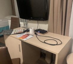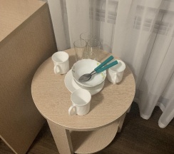 Чисто. Есть всё необходимое. Кулер с водой, холодильник, СВЧ печь, инет, чай,сахар.