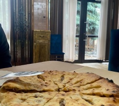 с чаем. В ресторане очень вкусная еда, брали осетинские пироги с мясом и сыром, очень вкусно. За окном ведутся работы по облогорадиванию озера, чутка помешал сну, но ничуть не испортило впечатление. Поеду в грузию, обязательно остановлюсь у них снова. Персонал добрый и приветливый!рекомендуем!