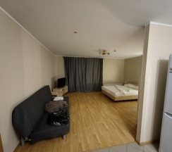 Хорошие апартаменты, но в деталях уже много «уставшего». И нет уюта. Само расположение отличное, рядом есть остановки. Также гипермаркет Лента.