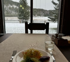Завтрак разнообразный, вкусный кофе с шикарным видом на горы. Персонал ресторана очень внимательный и заботливый, всегда обращают внимания на пожелания гостей!