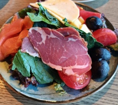 завтрак не очень сытный, мало хлеба, малееькие чашки с напитками, нарезка скудно