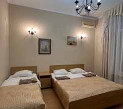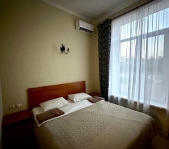 Останавливались 02.08.2025 по пути в Крым. При бронировании девушка виновато сообщила, что остался только номер эконом, который очень маленький и нет wi-fi. Приехали очень поздно в 02:00 ночи, нас встретил охранник, проводил в номер. И вот здесь читать внимательно- это закрытая территория, с озеленением, собственной парковкой на территории ( это очень важно для нас), номер с отдельным входом. Номер: чистейший, с небольшим холодильником но отлично работающим в такую жару, кондиционер который охлаждает а не пахнет сигарета чистый санузел, полотенца, тумбочки, стулья. Очень сносные кровати. Это уверенный комфорт. Кафе работаем с 6:00. Номер обошелся в 3.500 3-х местный и плотный завтрак 1000₽. Рекомендуем к остановке.