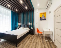 Проживали с мужем в этом отеле 2 суток, бесконтактное заселение, чистый и стильный номер, отличное расположение, есть общая кухня с необходимым принадлежностями, в ванной комнате теплые полы!