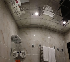 Двухместная комната, в которой находятся: кровать king-size с прикроватными тумбочками, комфортная диван-кровать, которая может являться дополнительным спальным местом, 2 кресла с журнальным столиком, ТВ, телефон, шкаф, вешалка с зеркалом и тумба для обуви. Санузел: стационарная большая ванна, зеркальные потолки, фен, унитаз с функцией биде, полотенца, шампунь, гель и жидкое мыло.