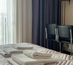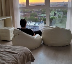 Отдыхали с мужем, так сказать, сменили картинку. Брали сутки, квартиру стандарт. Понравилось, что это не номера, а квартиры, ты как бы уединен от всех, ресепшен в отдельном помещении, все быстро оформили, выдали ключи, объяснили куда идти, жили на 8 этаже, вид во двор, но мы были уже вечером, нам он особо и не нужен был. В квартире уютно, все есть, жаль что халаты за доп.плату, но обошлись без них, одноразовые тапочки, мыло, гель для душа, шампунь есть, зубные одноразовые принадлежности, полотенца, для кухни тоже все есть, постель чистая, приятная, шторы блэкаут, телевизор, каналов предостаточно, есть фен, гладильная доска, утюг. Брали завтраки 1300₽ за двоих, кафе Союз, находится внизу, в этом же доме, приятное, все вкусно, можно выбрать сет или что то на раздаче, не богат конечно выбор, но для завтраков самое то. В общем все понравилось, рекомендую 👍