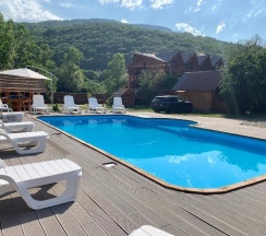 Отдыхали на базе в конце мая 2024) Очень удачное расположение 40 минут до Азишской пещеры, 10 минут до канатной дороги, 15 минут до водопадов, рядом находится горная речка и старинный мост 1906 года. На базе есть бассейн подогреваемый, беседки с мангалами. Единственный минус это отсутствие фена в номере.