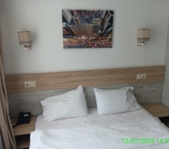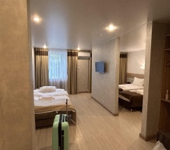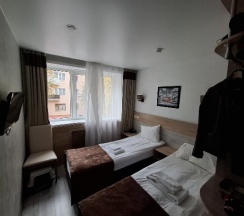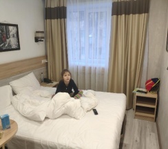 Ну очень приятные впечатления остались после пребывания в данном отеле. Во-первых, близко находится ко всем достопримечательностям, 8-10 минут до Кремля. Во-вторых, номер очень удивил (в хорошем смысле). Нас проживало трое человек. Предоставили две односпальные с перегородкой и одну полуторную. Кондиционер хорошо работал, также в номере был мини-холодильник, маленький кухонный уголок со столешницей и всей необходимой посудой. Ванная комната очень просторная. Вмещала в себя душевую, туалет, умывальную раковину. Бар при отеле достаточно хороший. Питание там производилось на достаточном уровне, не сказать, что высоком, но было съестно. Шведский стол на завтраке неплохой, но не сильно разнообразно. На 4 дня (сколько мы там и были) может и неплохо будет в плане питания, но если жить там больше - неделю и даже больше, надоест однообразная пища. В общем и целом – хороший отель со своей заслуженной звездностью.