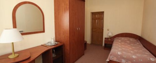Одноместный номер категории Стандарт с односпальной кроватью. Все удобства находятся в номере.
