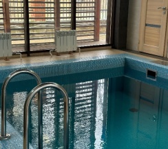 В коттедже чистота, есть все необходимое. Ценник только космический, но если ехать большой командой, то норм. Сауна классная, бассейн с комфортной водой. Все по высшему разряду.