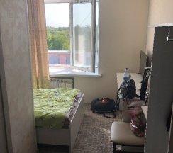 В целом номер очень маленький- стоит стол, кровать, телек, шкаф, холодильник; есть чайник, чай,кофе, кружки, тапочки, халаты, фен.