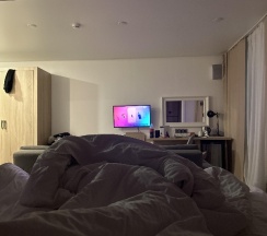 Единственные минус- нет шторы в ванной, ну и посуда конечно грязная, но помыть не проблема)