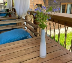 Были с детьми, везде можно дойти пешком: и до берега Байкала, и до подъёмников. Для разнообразия рядом есть чудесная кофейня. В отеле сауна с хамамом и отдельно баня на дровах. Каминный зал с бильярдом. В общем, всё понравилось! Пожалуй, в округе подобных мест больше нету.