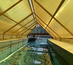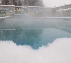 Зимой - экзотика , купаешься в тёплом бассейне под открытым небом. Летом смысла не вижу. Разве что ехать лечиться )