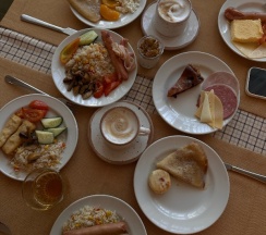 Впечатления отличные: номер большой, чистый, красивый, большая площадь. Хороший спа. Много книг, настольных игр в свободном пользовании, на улице игры для детей, самокаты, велосипеды. Завтраки вкусные и разнообразные.