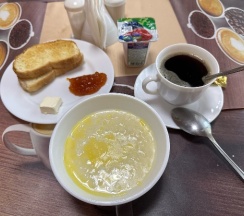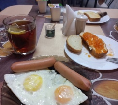 В отеле можно сходить в баню, и поиграть в бильярд. Правда, мы были с детками, этими услугами не пользовались. Другие гости активно использовали эти услуги. В проживание входит завтрак, утром нас очень хорошо покормили. Еда разнообразная, помимо горячего завтрака, имеется десерт. Всё досточно вкусно!