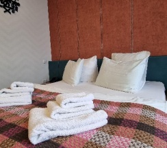 Номер чистый, кровать с ортопедические матрасом, белье чистое. В номере предусмотрена небольшая кухня, со столовыми приборами и кухонной посудой. Предусмотрены однорозовые гигиенические наборы. Впечатление отличное.