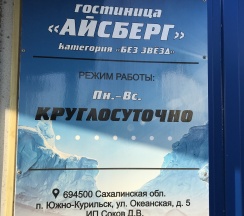 Гостиница состоит из нескольких блоков. Мы жили в главном (синем) здании. При входе установлены шкафчики для обуви, тут же выдают тапочки для перемещения по дому. Благодаря этому внутри очень чисто, можно и в носках ходить. Номера разделены на секции-блоки: в одном блоке одна комната с двуспальной кроватью, одна с двумя односпальными и общий санузел. Также в блоке есть небольшой закуток с холодильником и чайником. Мне достался номер с двуспальной кроватью. В номерах аккуратный ремонт, очень мило и уютно. По интерьеру все просто, но есть все необходимое: шкаф, стол, тумба, телевизор. Был даже боковой вид на океан) Постельное белье уже было застелено, не пришлось возиться с постелью после активной экскурсии. Это очень порадовало. Санузел совмещенный, блочного типа (на две комнаты), установлена душевая кабина. Горячая вода была всегда. В гостинице можно воспользоваться стиральной машиной и сушкой, что очень важно, учитывая влажность воздуха и специфику некоторых экскурсий. Девчонки с ресепшен умницы все, с кем успели пообщаться: улыбчивые, вежливые, всегда помогут, подскажут, сориентируют. В номерах было чисто, как и в общих помещениях. Отдельного упоминания заслуживает кухня: кормят просто шикарно! Очень вкусно и по-домашнему! Кормили местными блюдами, порционно: пельмени из красной рыбы, салат из пизулы и другими. Сырники - восхитительны! Вообще, атмосфера в «Айсберге» домашняя, было ощущение, будто приехали в гости, а не просто заселились в гостиницу!)) Остались самые приятные впечатления. Большое спасибо всему коллективу и руководству за потрясающий и атмосферный отдых! Из пожеланий: можно усилить сигнал Wi-fi, хоть мобильный интернет работает отлично у любого оператора. С наилучшими пожеланиями (заезд 10-13.08.2025 г.)!