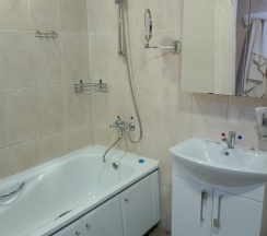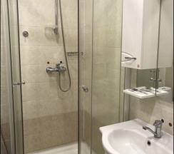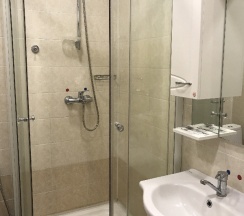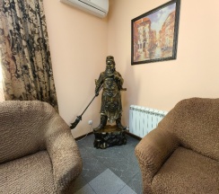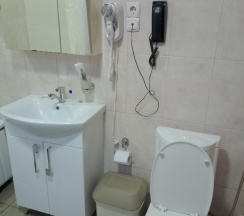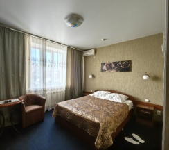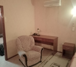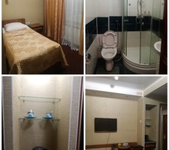 Приятное впечатление начиная от ответа на мой звонок. Очень приятная и доброжелательная администратор, заселила нас поздно вечером. Номер хороший, чистый, есть все необходимое, душ и туалет в номере, кондиционер, чайник, холодильник, фен, телевизор. Утюг в отдельной общей комнате. Парковка охраняемая платная на территории гостиницы. Охранник внимательный (заметил что в салоне авто включён свет и тут же нам сообщил). Рекомендую!