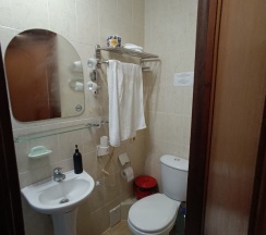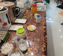 Заселение быстрое, номер (одноместный) комфортный, есть тв (не пользовался), чайник, кофе, печенье, 2 бутылки воды по 0,5. Впервые в отелях увидел электро фумигатор от комаров и две таблетки к нему. Удобная кровать. Есть халат, но почему то нет тапочек. Санузел, тоже удобен. Есть моющие средства для душа. В одноразовых зубных щётках не всегда есть зубная паста. Отличные завтраки. Хорошее местоположение, есть своя закрытая парковка. Администраторам желательно быть по улыбчевей, что ли.
