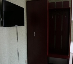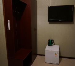 В номере: односпальная кровать, телевизор, холодильник, душ, туалет