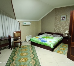 Администратор, она же бухгалтер в одном лице, без проблем заселила меня. Номер был на третьем этаже, с чемоданами, конечно, не очень удобно подниматься, а что делать. Парковка не особо охраняемая, вроде как, под камерами - вся территория за забором. Вечером много приезжает людей в кафе, и припарковаться может быть и негде. Лишь позже место появляется. Номер довольно чистый, уютный. Оснащен холодильником, кондиционером. Всё бы хорошо, но большая проблема с водой. Так понимаю, в Дальнереченске, в принципе, проблема с горячей водой - жил в другом отеле, и там тоже водонагреватель стоит. Здесь установлен водонагреватель, но он слабенький - душ принять теплый сложновато. Если поднимать лейку на уровень головы, горячая вода прекращает поступать. На уровне метр над полом более-менее льется. Не слишком сильно. А так - вполне прилично всё.
