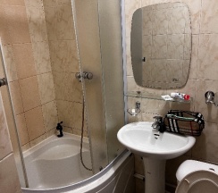 Ночевали по дороге во Владивосток. Семья из 3 взрослых, сняли 2 местный номер. В номере 2 больших кровати, телевизор, столик, вешалка. Санузел совмещён, совсем крохотный, за занавеской душ. Так как номер 2 местный, то и полотенца, кружки, стаканы на 2. Приятно были удивлены, что в душе положили одноразовые зубные щётки, пасты, мыло, и даже шампунь! В стоимость входит завтрак на выбор: сырники или бутерброд + чай/кофе.в номере есть кондиционер. За номер отдали 3200. Во дворе платная парковка за 150 рублей, рядом есть магазины, аптека, кафе. В гостинице тихо, в холле на 1 этаже есть кофе автомат. На каждом этаже кулер с водой. Обновить ремонт и было бы 5 баллов. Но в общем на пару ночей остановиться можно.