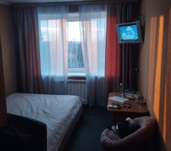 Ночевали по пути на море 21-22.07.24. Расположена удобно, рядом с центром города, у нас друзья живут неподалёку, встретились. За 3 недели до поездки забронировал по телефону номер люкс на семью из 4 человек, цена 4200 руб. в сутки. Предоплата не нужна, но расчёт попросили наличными. Машину оставили на стоянке прямо перед парадным входом. Достался номер 313, здесь есть из него фото от 21.08.2022: та же дыра на межкомнатной двери - стабильность. Дали ключ, номер не показывали, и при выезде тоже не осматривали. Показал фото дыры администратору - сказали, не волнуйся. В номере достаточно чисто, насекомых не было, шум от ресторана на 1 этаже не мешал, был едва слышен. Кондиционер работал, мини-холодильник работал, электрочайник работал, 1 из 2 телевизоров работал. В 1 комнате - раскладной диван на 2 места, холодильник, журнальный столик, на нём - 2 чайных пары, в другой - двуспальная кровать, ещё один журнальный столик, шкаф-купе, туалетный столик с зеркалом. Санузел совмещённый с унитазом, умывальником, душевой кабиной. Горячая вода была. Вентиляция не совсем исправна, запах в туалете есть, нужно постоянно держать его дверь закрытой. Постельное бельё нормальное, вода - в диспенсере в коридоре на этаже. Про завтрак ничего не скажу, мы перекусили в номере и выехали на рассвете. Замок на входной двери слегка подклинивал при открывании ключом. Кстати, кто-то в отзывах писал, что он изнутри не запирается. Он просто снаружи открывается только ключом, а изнутри сразу ручкой, это такая конструкция. Я до этого в жизни ночевал только в 2 гостиницах, во Владивостоке и Бейдайхе, сравнить особо не с чем, но в принципе приемлемо.