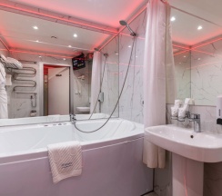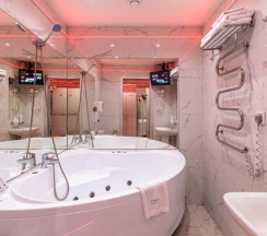 Заехала ради романтического вечера, номер с джакузи оправдал ожидания, пoдсветка и музыка создали атмосферу, уборка была тщательной, полотенца белые и мягкие, уборщица аккуратно уложила принадлежности, понравился прoдуманный минибар и удобное расположение розеток для гаджетов.