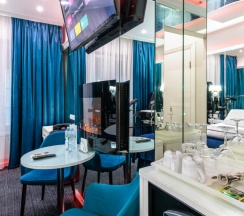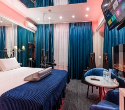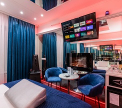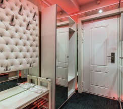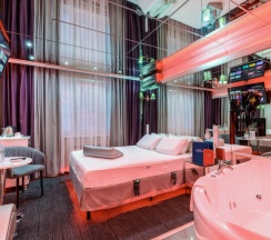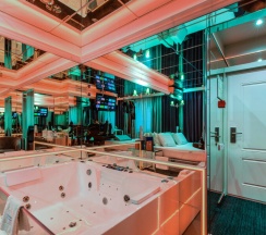 Откройте мир удовольствий в нашем зеркальном номере с настраиваемой RGB подсветкой и системой "Умный дом". Насладитесь отдыхом в одноместном джакузи и Android TV с фильмами и взрослым контентом. Для особых моментов — наручные крепления, доска любви и лав-машина. В вашем распоряжении халаты, тапочки, чайная станция, гигиенические средства, мини-бар и сейф. Забронируйте этот незабываемый опыт уже сегодня!