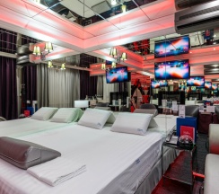 Погрузитесь в атмосферу полностью зеркального номера с регулируемой RGB подсветкой. В ванной комнате вас ждет двух-трехместное джакузи. В спальне и ванной установлены Android TV, где можно смотреть фильмы, сериалы, а также доступен контент для взрослых. Для незабываемых моментов предусмотрены доска любви и лав-машина с одноразовыми насадками. Также в вашем распоряжении плётки, кляпы, верёвки, халаты, тапочки, чайная станция, средства гигиены, мини-бар и сейф. Забронируйте этот незабываемый опыт уже сегодня!