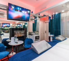 Я выбирал место для романтического сюрприза. Хотелось чего-то необычного — и получилoсь! Номер просторный, стильный, подсветка создаёт настроение, а зеркала добавляют пикантности 😏. Девушка оценила, сказал бы даже — больше, чем я рассчитывал!