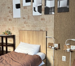 Отличное место! Встретила нас приятная женщина, отношение персонала в целом оставило позитивный настрой. Нас впустили с собакой. Большой красивый номер. Всё чисто, уютно, порадовали цветы в номере: ухоженные,не покрытые пылью задохлики, видно люди заботятся. В номере есть всё необходимое: кондиционер, тапочки,щётки,чай и тд. Рекомендую 👍