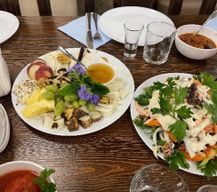 Тихо, красиво, комфортно, мало людей. Понравился и завтрак, и обед, купили продукты в вашем магазине. Процветания Вам !